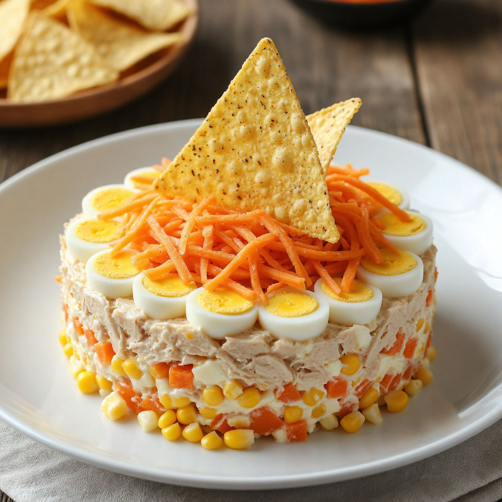 Салат Парус с корейской морковкой и чипсами начос