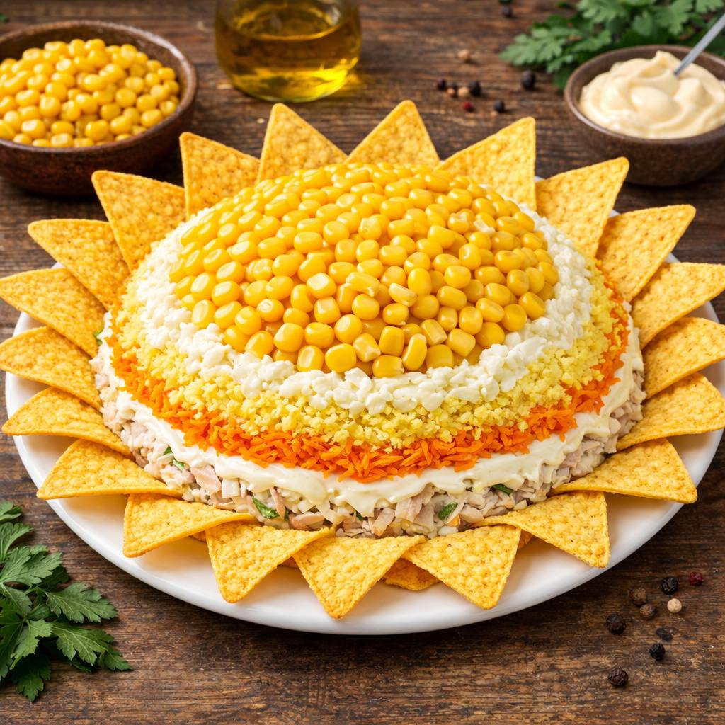 Салат Подсолнух с чипсами начос